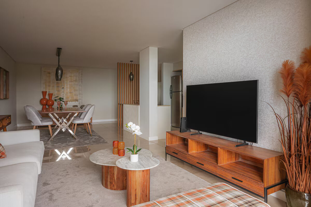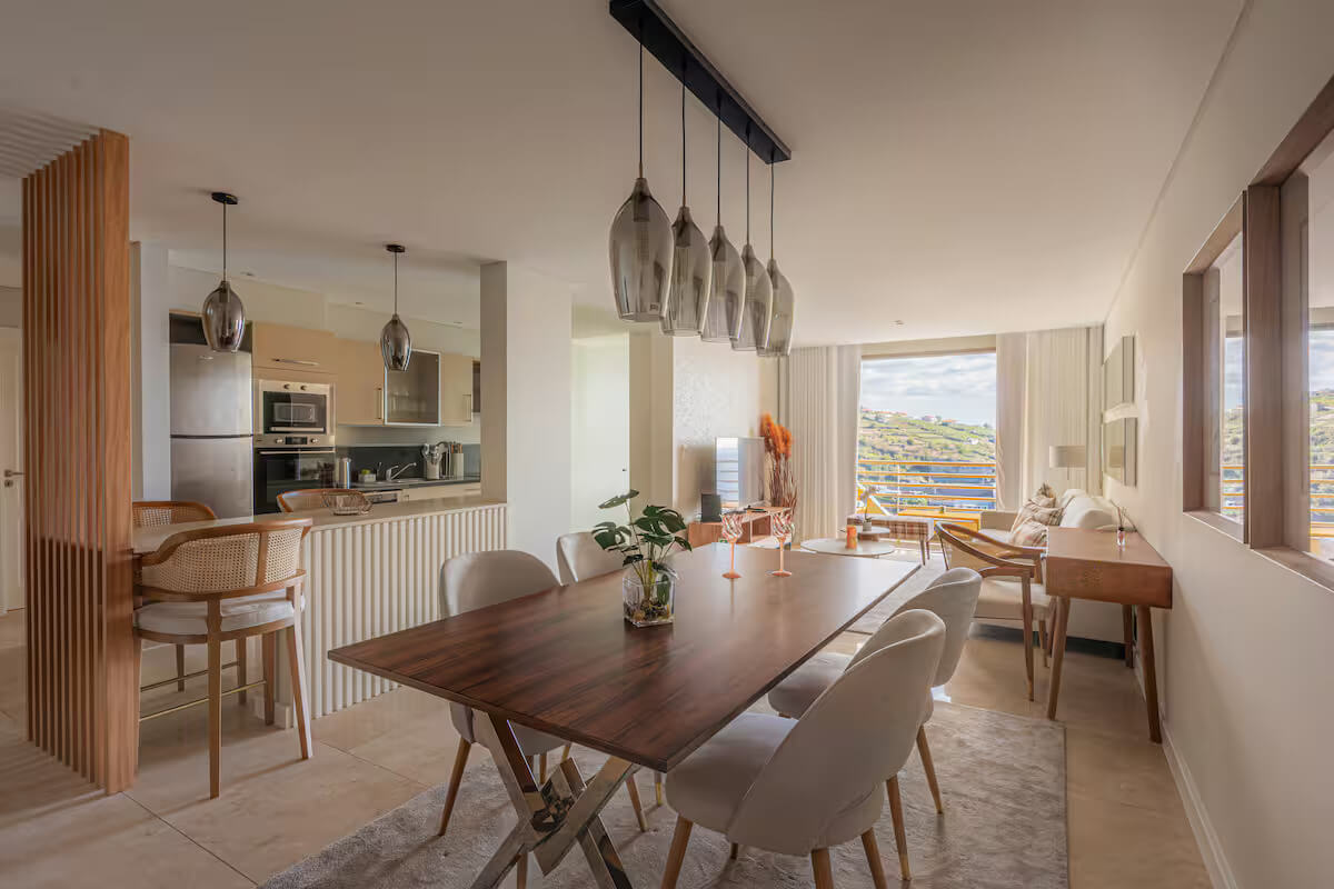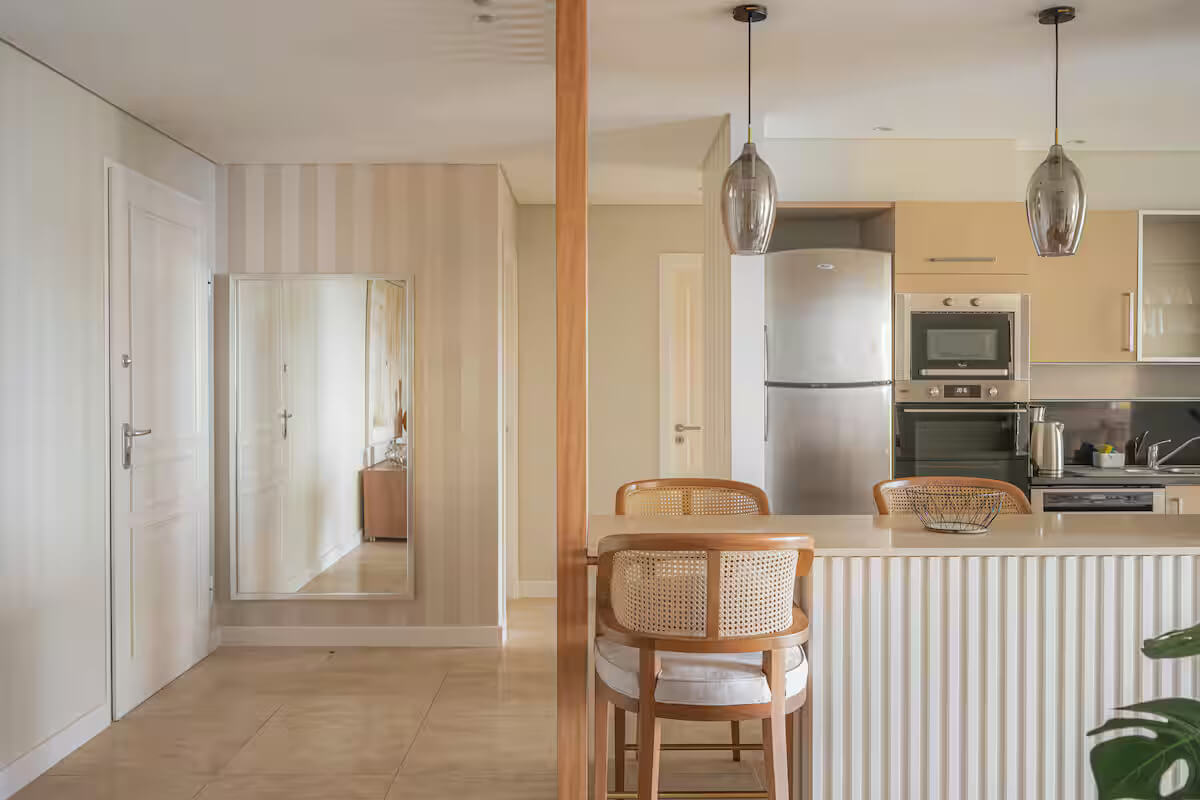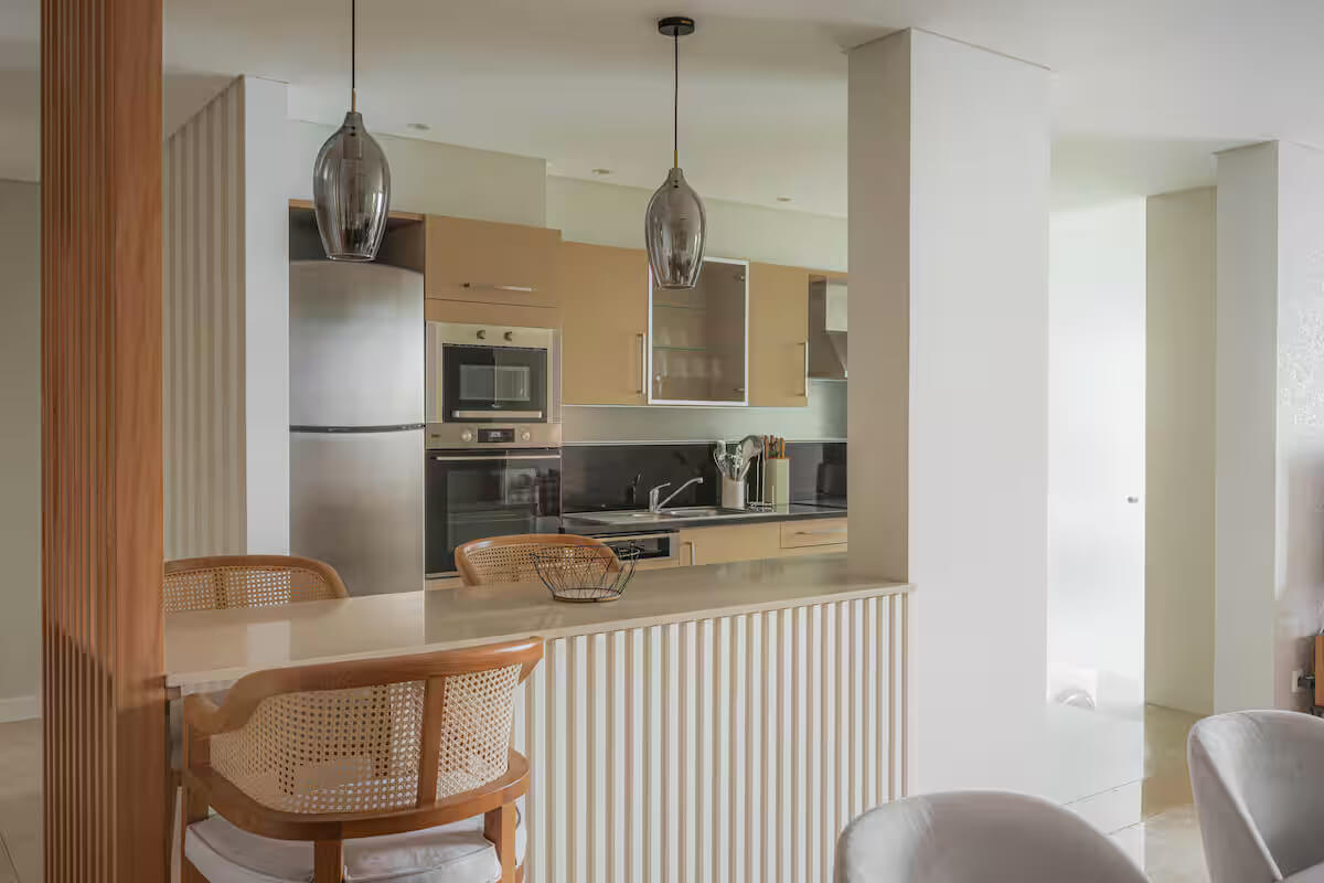 - Comodidades: Ar condicionado, Espaço de trabalho dedicado, Estacionamento gratuito, Cozinha, Câmaras de segurança, TV, Máquina de lavar roupa, Wifi