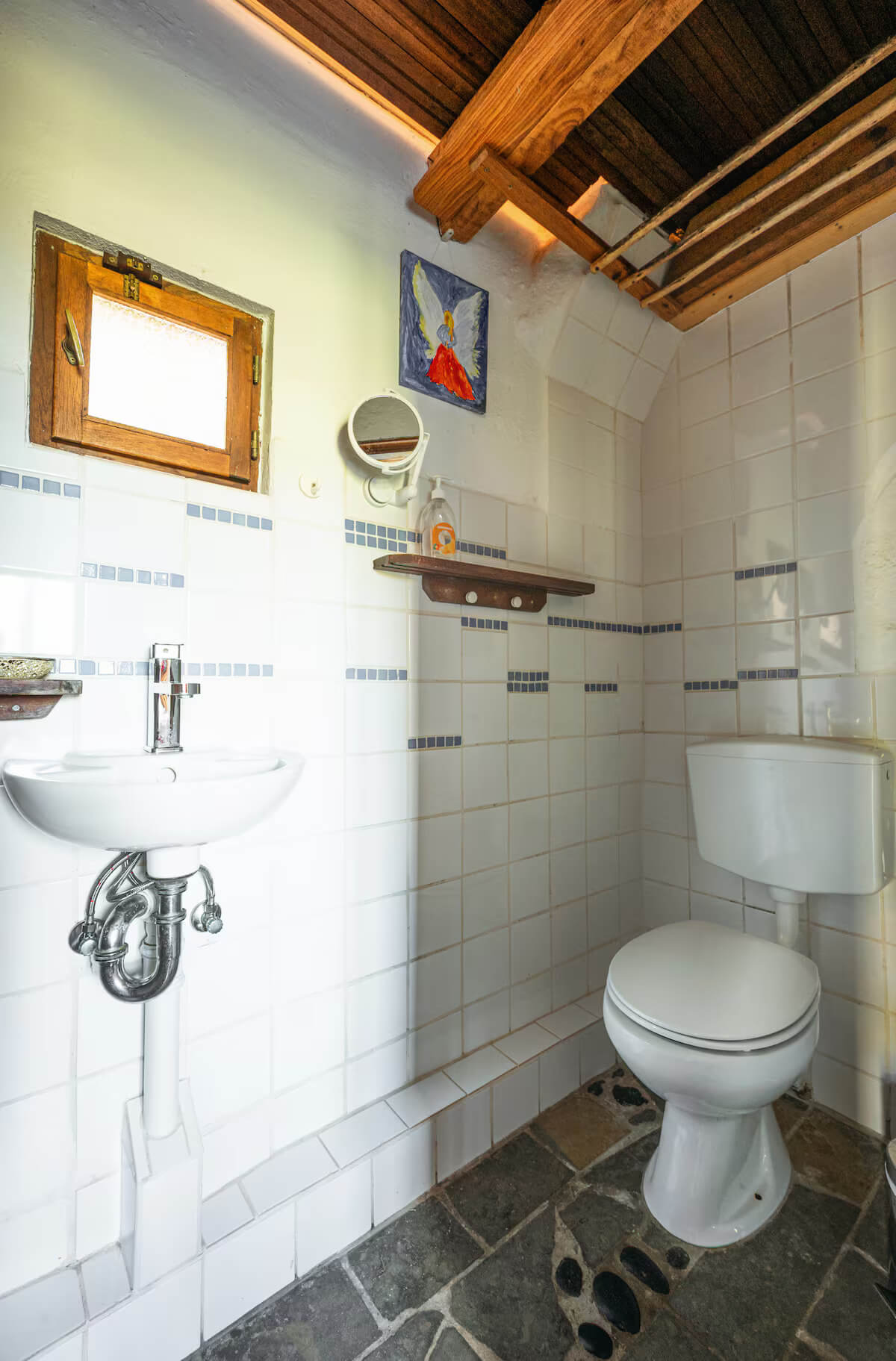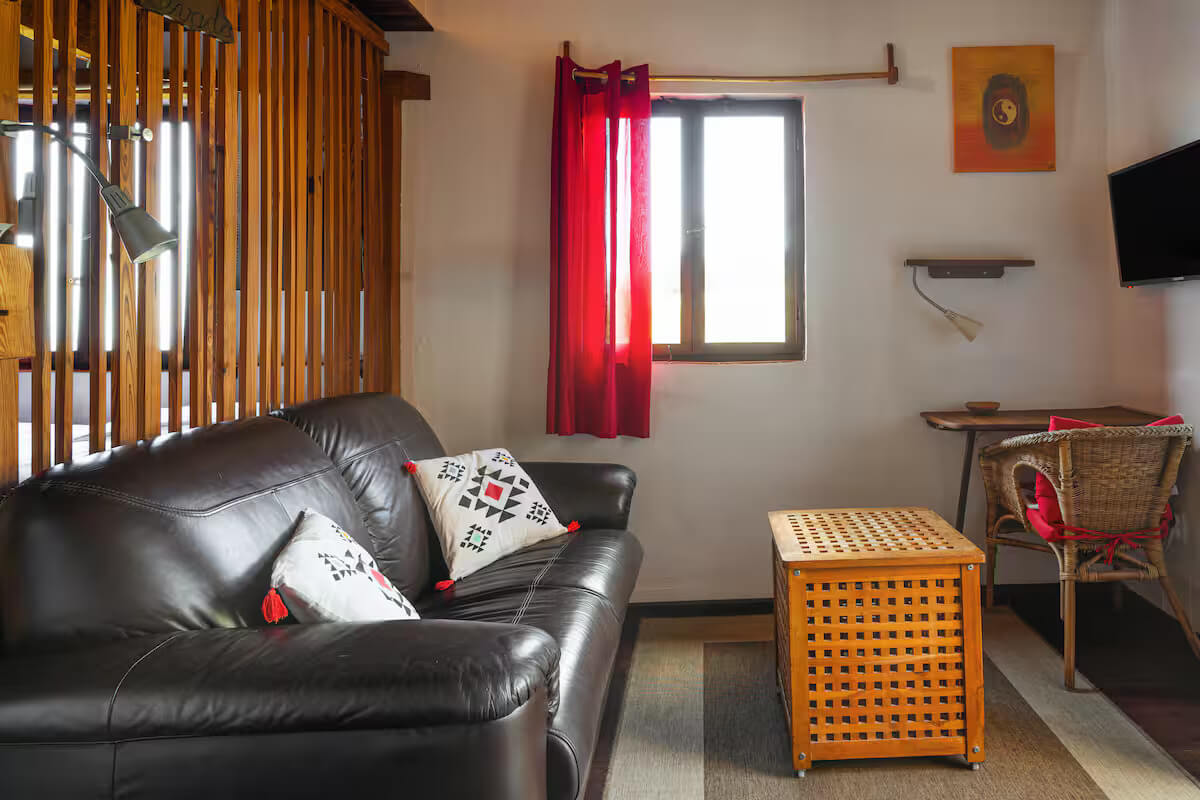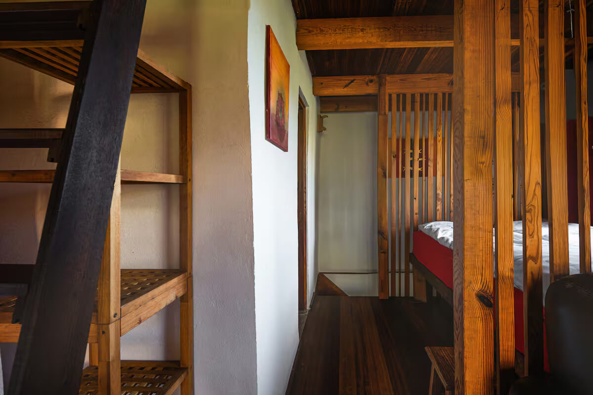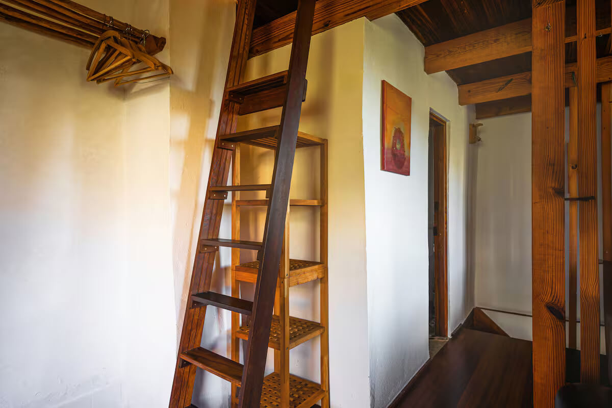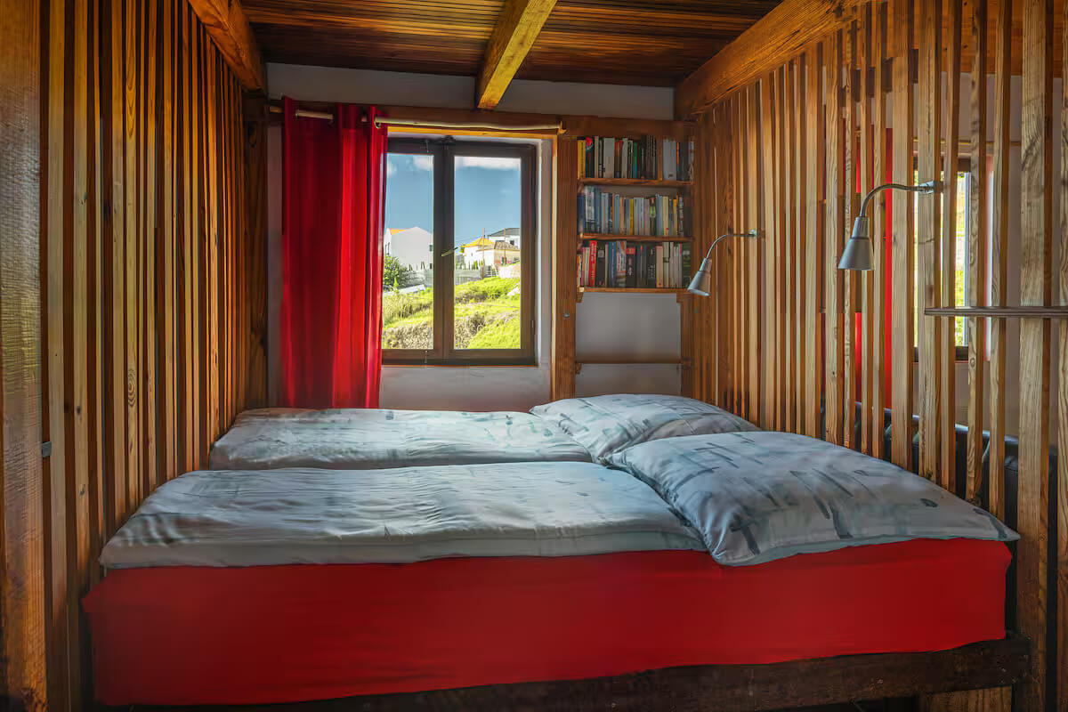 Nos antigos terraços vinícolas encontra-se a Casa Levada, uma bela casa com uma planta aberta em dois pisos e um piso para dormir. Anteriormente, a família do produtor de vinho vivia aqui apenas no piso superior. Atualmente, a antiga adega alberga a cozinha espaçosa, mobilada de forma rústica, com uma lareira e a área de estar. Uma porta-janela permite a entrada de luz suficiente e oferece belas vistas sobre os antigos terraços vinícolas e o Oceano Atlântico. No andar de cima, há uma cama de casal debaixo de uma janela, de onde se pode ver o sol a afundar-se no mar no inverno. Uma casa de banho original com um toque marítimo e outra área de estar com um pequeno sofá-cama criam um ambiente acolhedor. Uma escada conduz a um sótão com uma pequena janela. As crianças ou os amigos podem ficar aqui num colchão de casal.