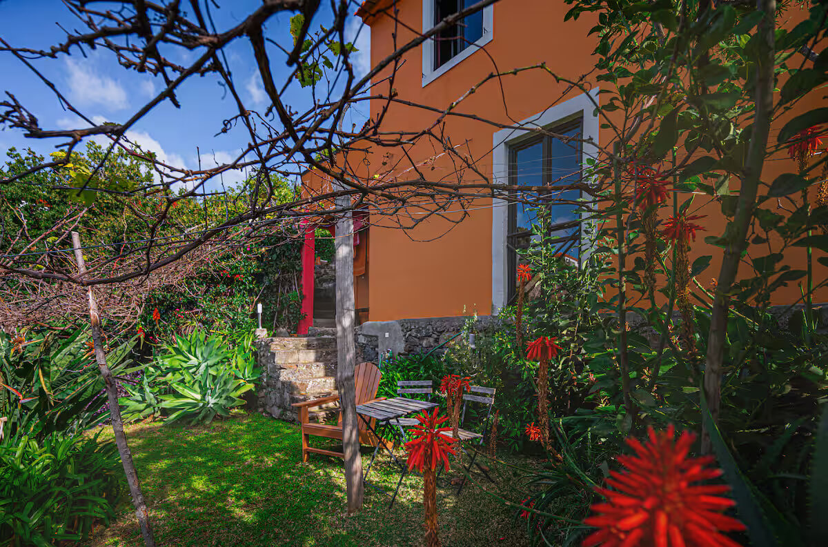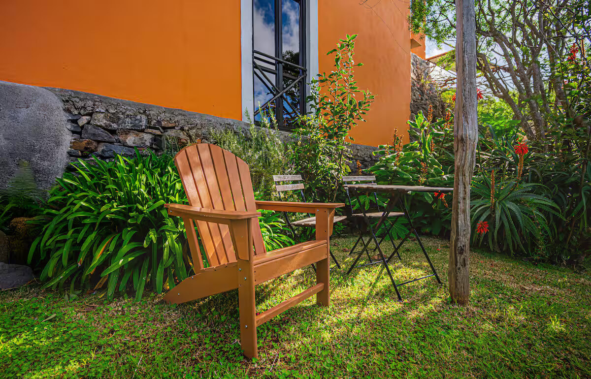 Mesmo ao lado da casa há um lugar acolhedor entre vinhas antigas. Aqui pode saborear um vinho da Madeira com bolo de mel típico ou um bife de atum grelhado caseiro.