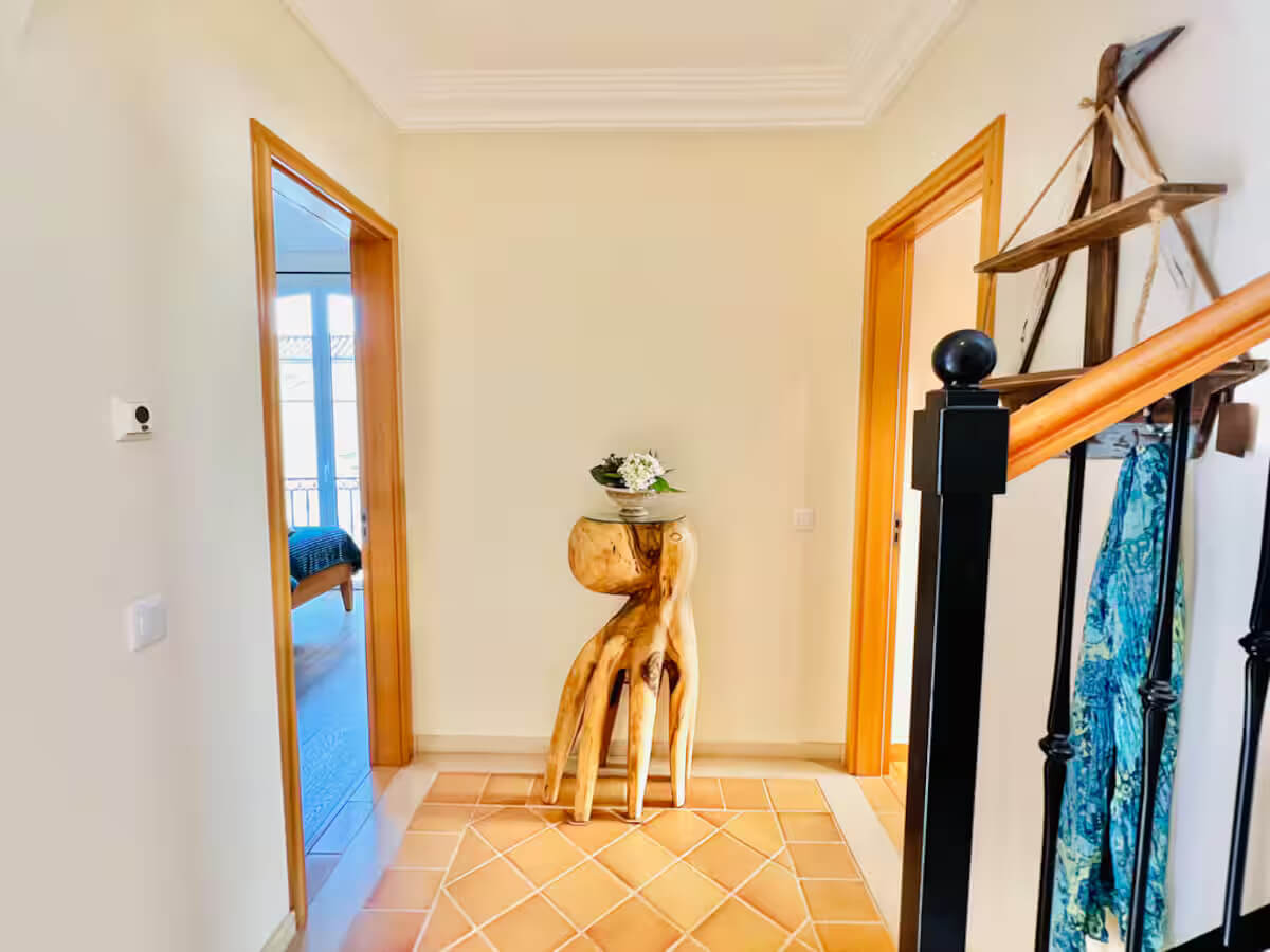 - Comodidades: Espaço de trabalho dedicado, Estacionamento gratuito, Cozinha, Vista para o mar, Piscina privada, Câmaras de segurança, TV, Wifi