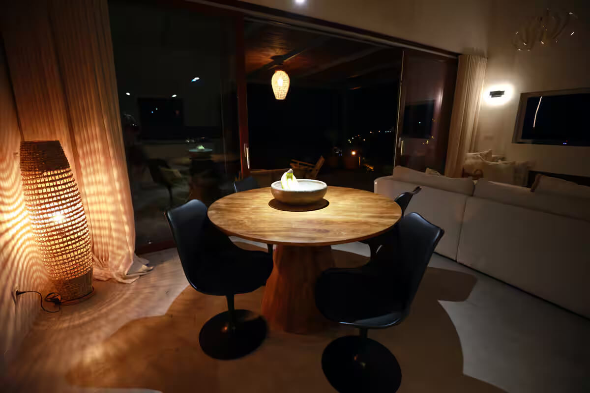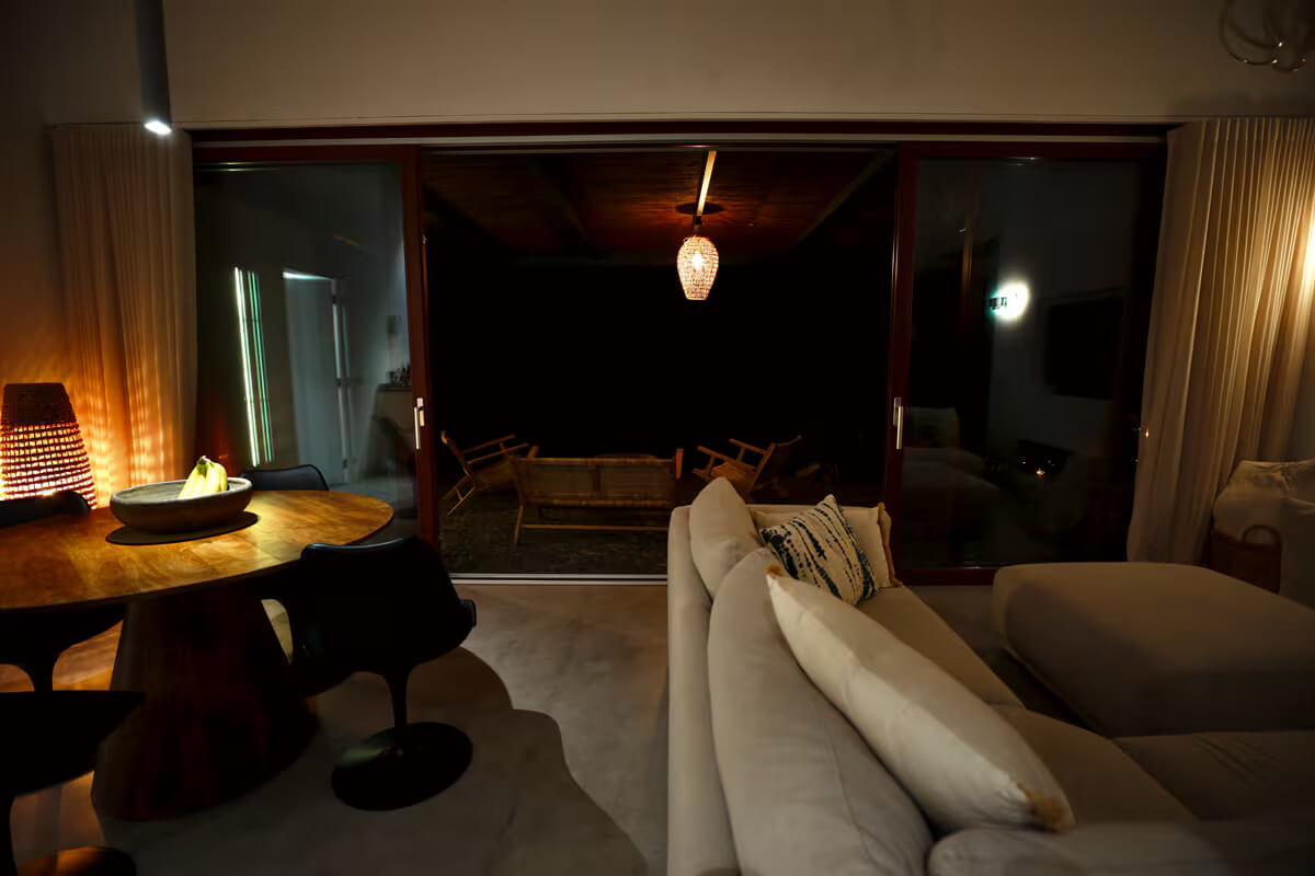 - Comodidades: Acesso à praia, Espaço de trabalho dedicado, Estacionamento gratuito, Cozinha, Piscina privada, TV, Máquina de lavar roupa, Wifi