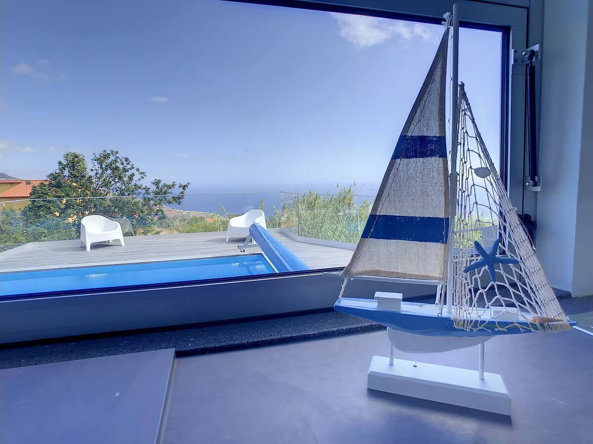 A nossa Vila Juntos é uma vivenda de luxo com 3 quartos, piscina privada, terraço, jardim romântico e barbecue coberto. Está localizada numa zona calma mesmo acima da Ponta do Sol. A moradia tem uma cozinha aberta totalmente equipada com forno, máquina de lavar louça e frigorífico. Há também uma casa de banho para hóspedes no piso térreo. No primeiro andar, dois quartos duplos com casa de banho partilhada, roupeiros embutidos, um com varanda, um quarto principal com casa de banho privativa, roupeiros embutidos e uma varanda.