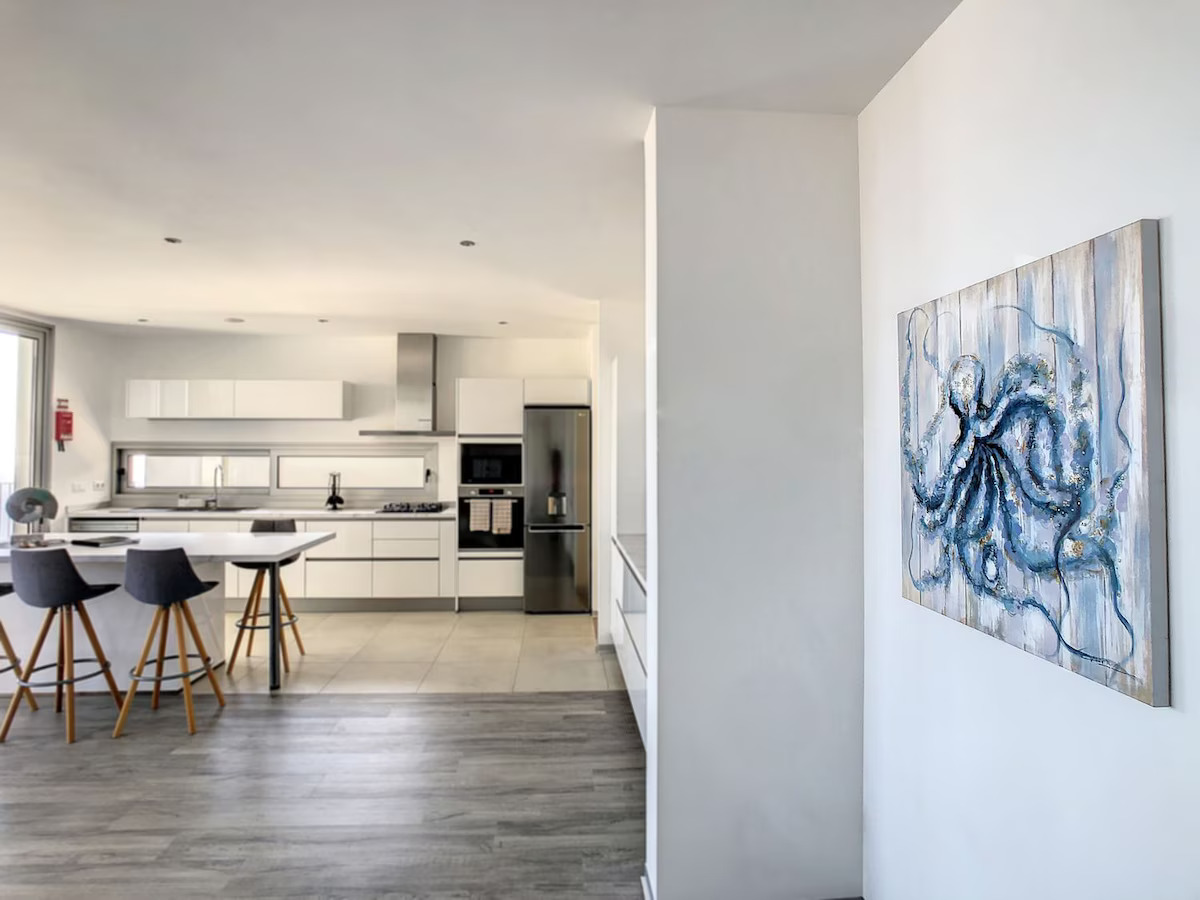 - Comodidades: Acesso à praia, Espaço de trabalho dedicado, Estacionamento gratuito, Cozinha, Vista para o mar, TV, Máquina de lavar roupa, Wifi